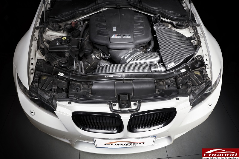 FOGIAGO|BMW E9X M3 干碳纤维高流量进气套件,专为 E90 / E92 / E93 M3(S65 4.0L V8) 精准开发。整套系统采用 全干式碳纤维冷进气风箱结构,搭配意大利BMC 4.3 inch 高流量进气滤芯,在保持完美密封的同时,实现最大化进气效率与响应速度。经过反复测试与声学优化,FOGIAGO 系统在中高转速区间带来更澎湃的声浪与流畅的进气曲线,为经典自然吸气 V8 赋予更纯粹的机械质感。